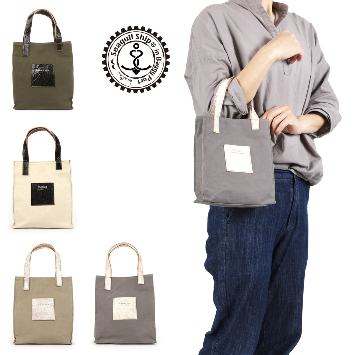 コンパクト縦長スクエアトートバッグ 防水帆布 クラック加工メタリックレザー 馬革 日本製 SEAGULL SHIP シーガルシップ BAGGY PORT バギーポート