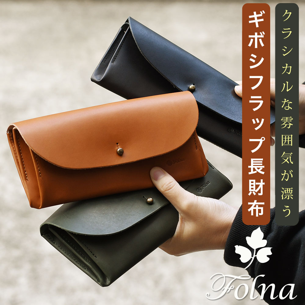 ギボシ フラップ長財布 姫路レザー 大容量 ヌメ革 本革 日本製 Folna フォルナ