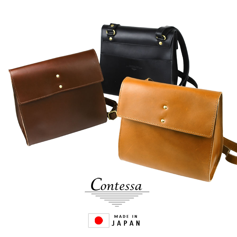 スクエア型 フラップ リュックサック ひねり金具 A4サイズ対応 姫路ダブルオイルレザー 日本製 Contessa コンテッサ