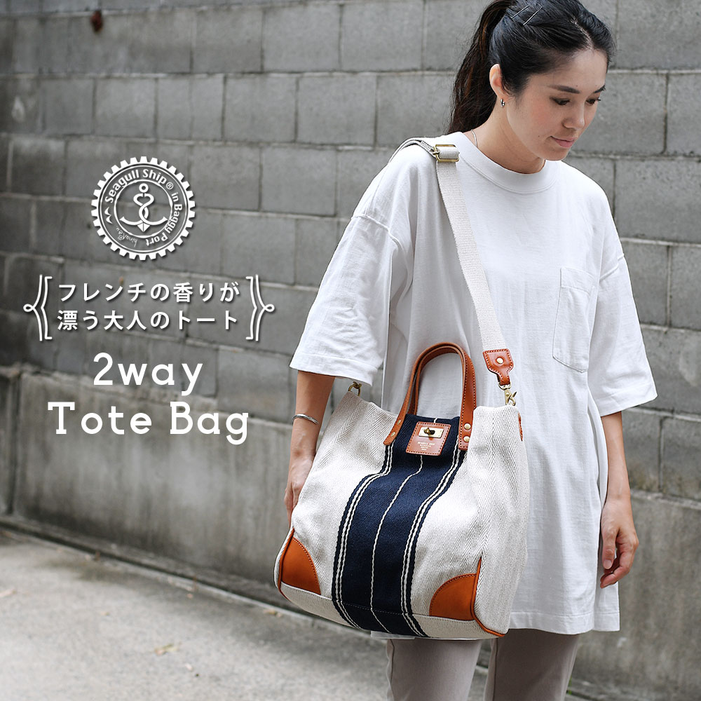 2wayトートバッグ 持ち手 長さ 肩掛け 国産帆布 姫路レザー 本革 日本製 船底型 SEAGULL SHIP シーガルシップ