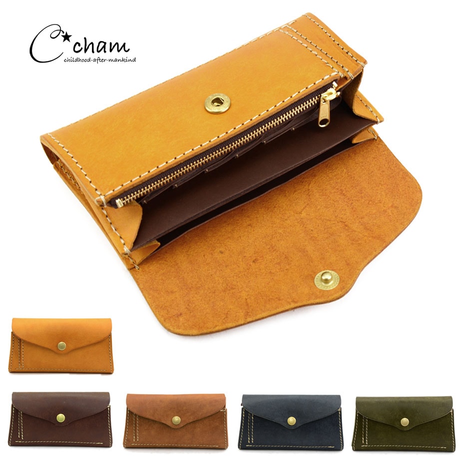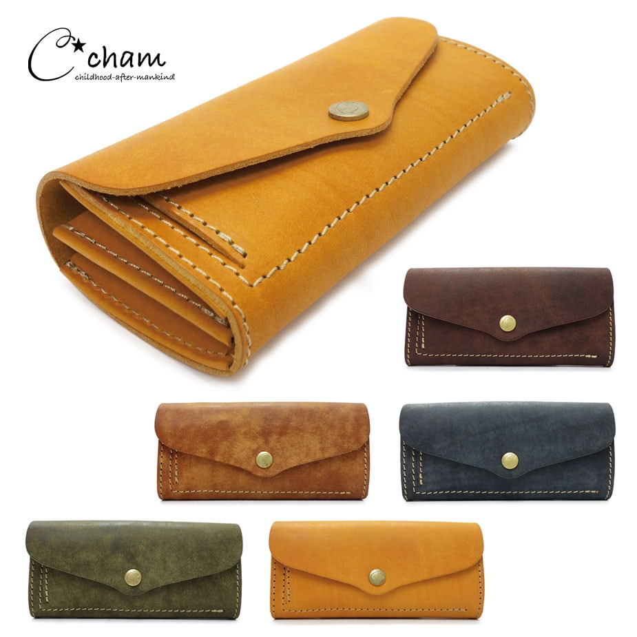 プランプ長財布 かぶせ 姫路レザー 栃木レザー オリジナルレザー ヌメ革 カラフル 本革 日本製 CHAM チャム ANCLE