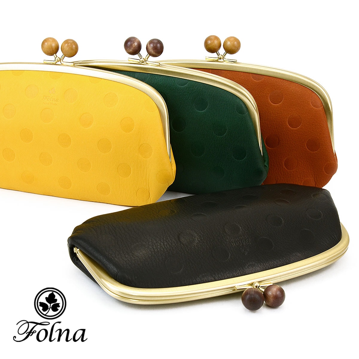 がまぐち二つ折り財布 木玉 水玉柄 牛革 本革 日本製 レディース Folna 2993903 フォルナ