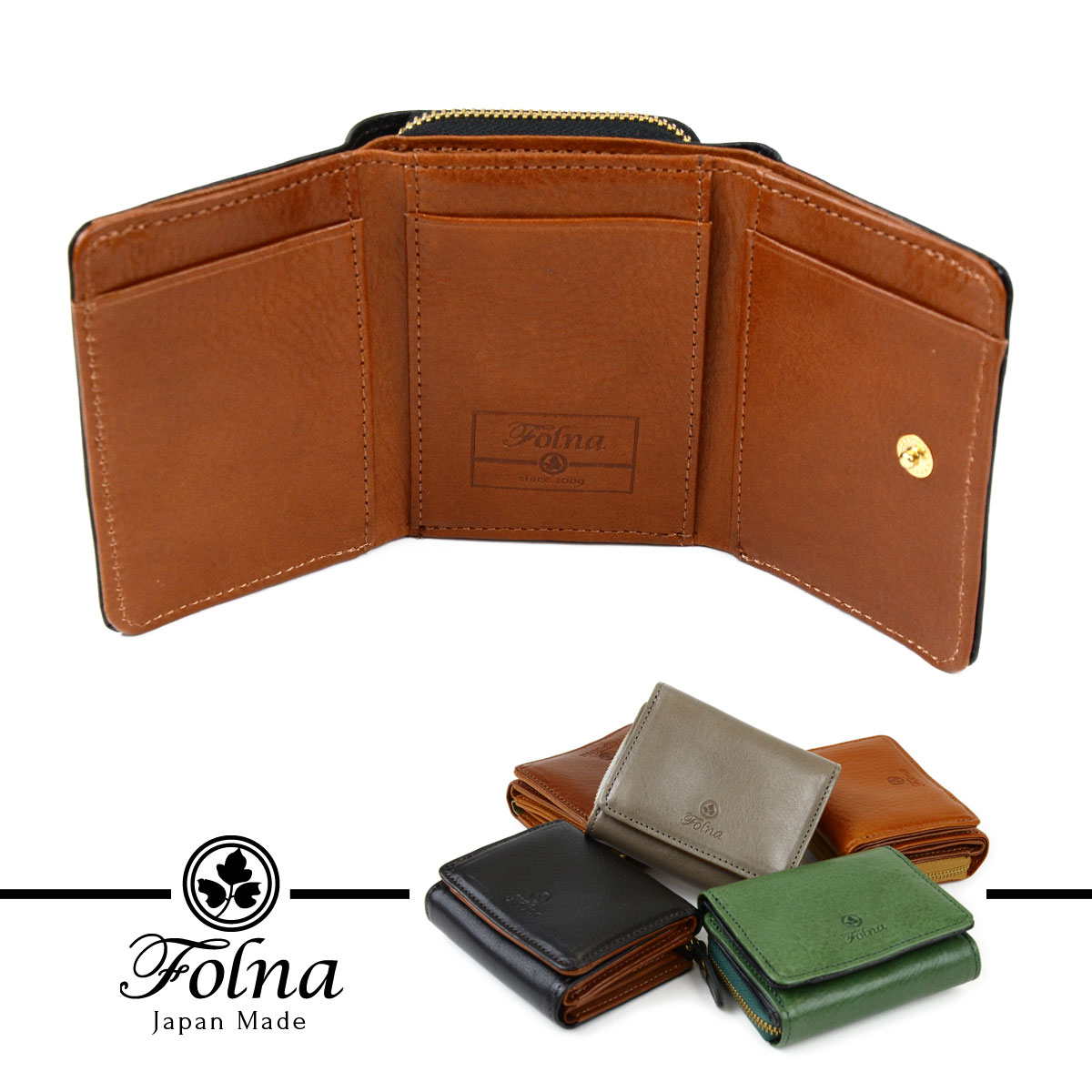 三つ折り財布 ミニ財布 L字ファスナー小銭入れ ヌメオイルシュリンク 牛革 本革 日本製 レディース Folna フォルナ