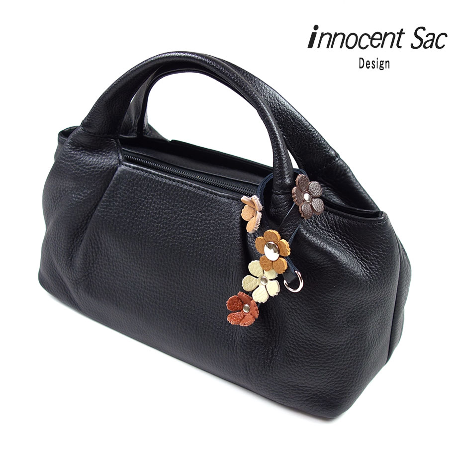 ブラックフォーマルバッグ ハンドバッグ 花飾り付き 両煽りポケット 本革 レディース 日本製 冠婚葬祭 慶弔 姫路レザー 牛革 国産 ブラック 黒色 innocent Sac イノセントサック