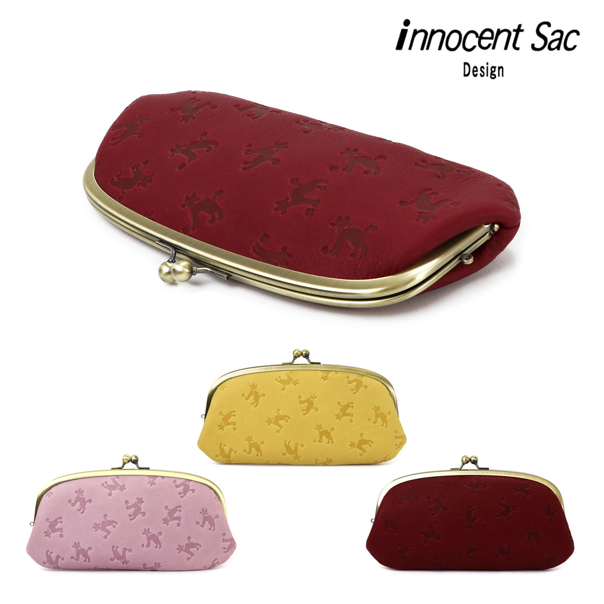 ファスナーポーチ ミニポーチ レザー レザーポーチ 型押し 猫柄 CAT ネコ シルエット innocent Sac イノセントサック 本革 日本製 Dカン