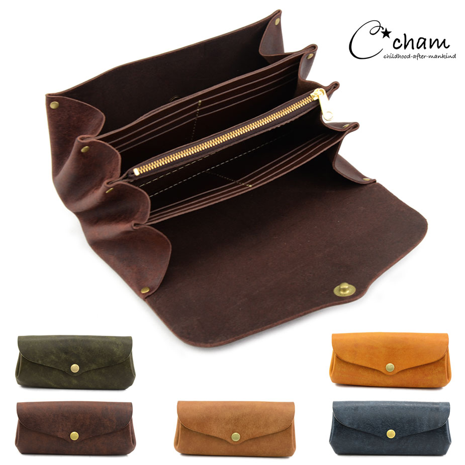 プランプ長財布 かぶせ 姫路レザー 栃木レザー オリジナルレザー ヌメ革 カラフル 本革 日本製 CHAM チャム ANCLE