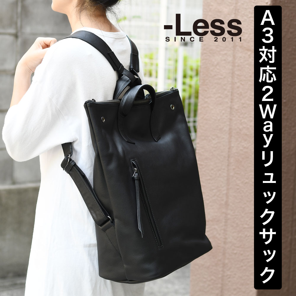 2スタイル変形リュックサック A3サイズ対応 b4 Lサイズ 日本製 インテリアレザー 2Way 超大型 大きいリュック Less Design レスデザイン