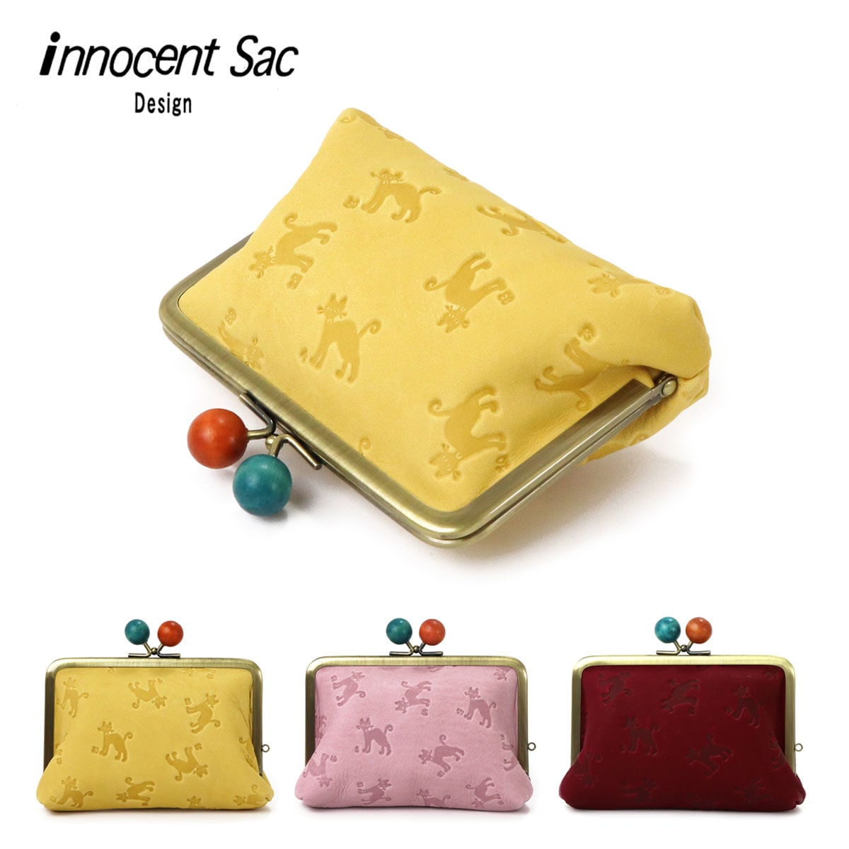 丸木玉がま口財布 猫柄 小銭入れ本革 日本製 innocent Sac イノセントサック