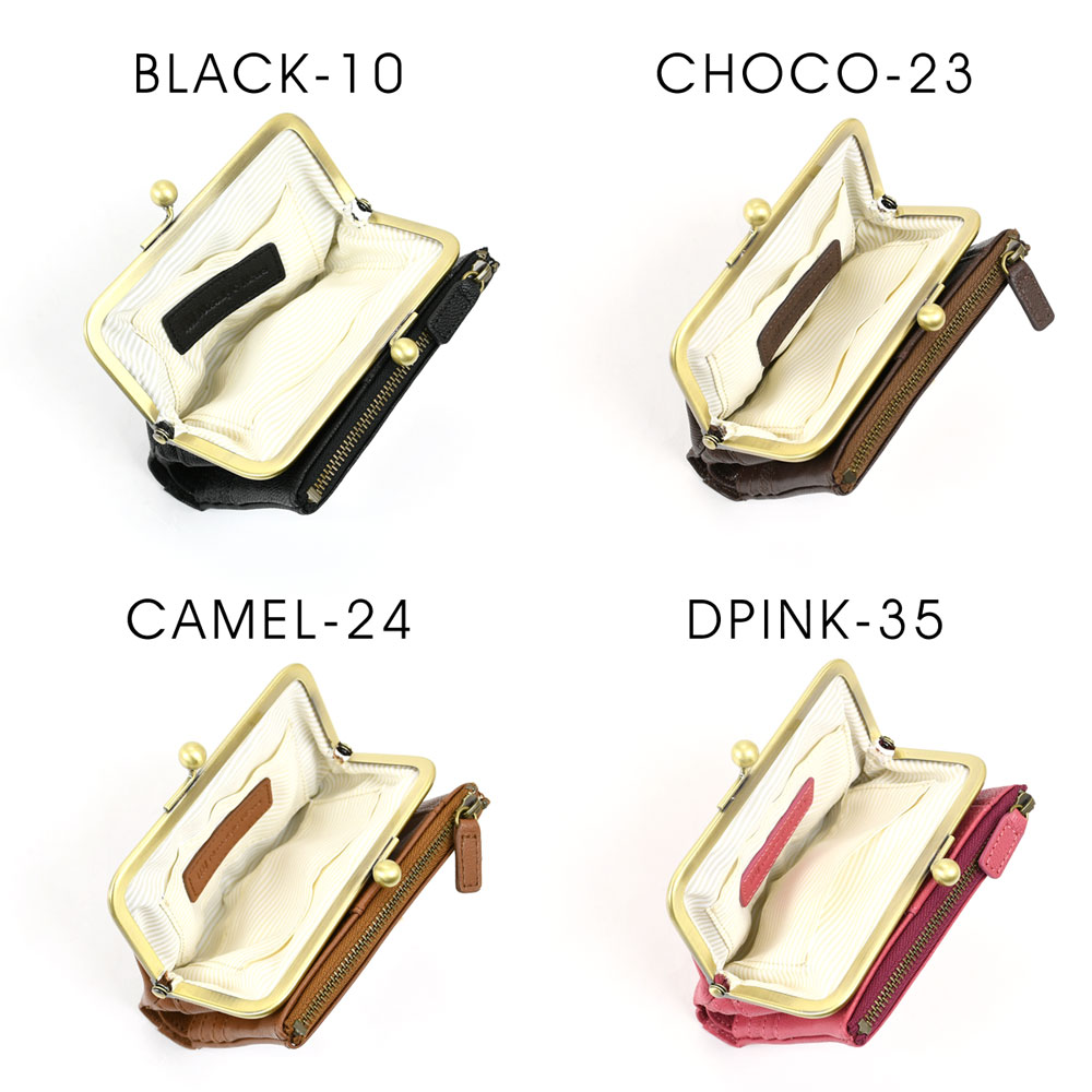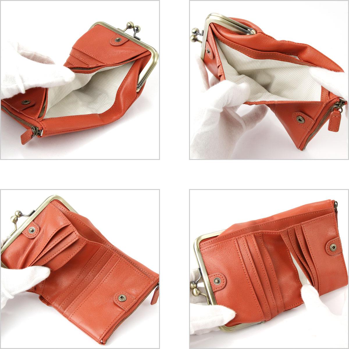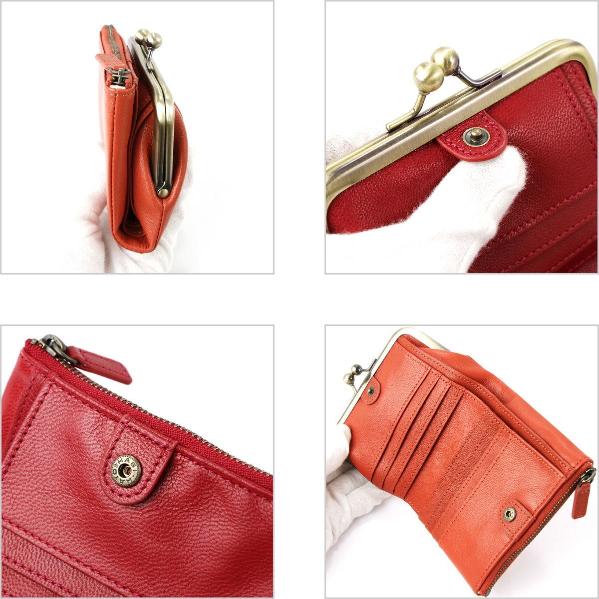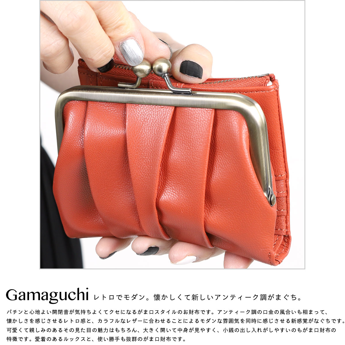 パチンと心地よい開閉音が気持ちよくてクセになるがま口スタイルのお財布です。アンティーク調の口金の風合いも相まって、懐かしさを感じさせるレトロ感と、カラフルなレザーに合わせることによるモダンな雰囲気を同時に感じさせる新感覚がなぐちです。可愛くて親しみのあるその見た目の魅力はもちろん、大きく開いて中身が見やすく、小銭の出し入れがしやすいのもがま口財布の特徴です。愛着のあるルックスと、使い勝手も抜群のがま口財布です。