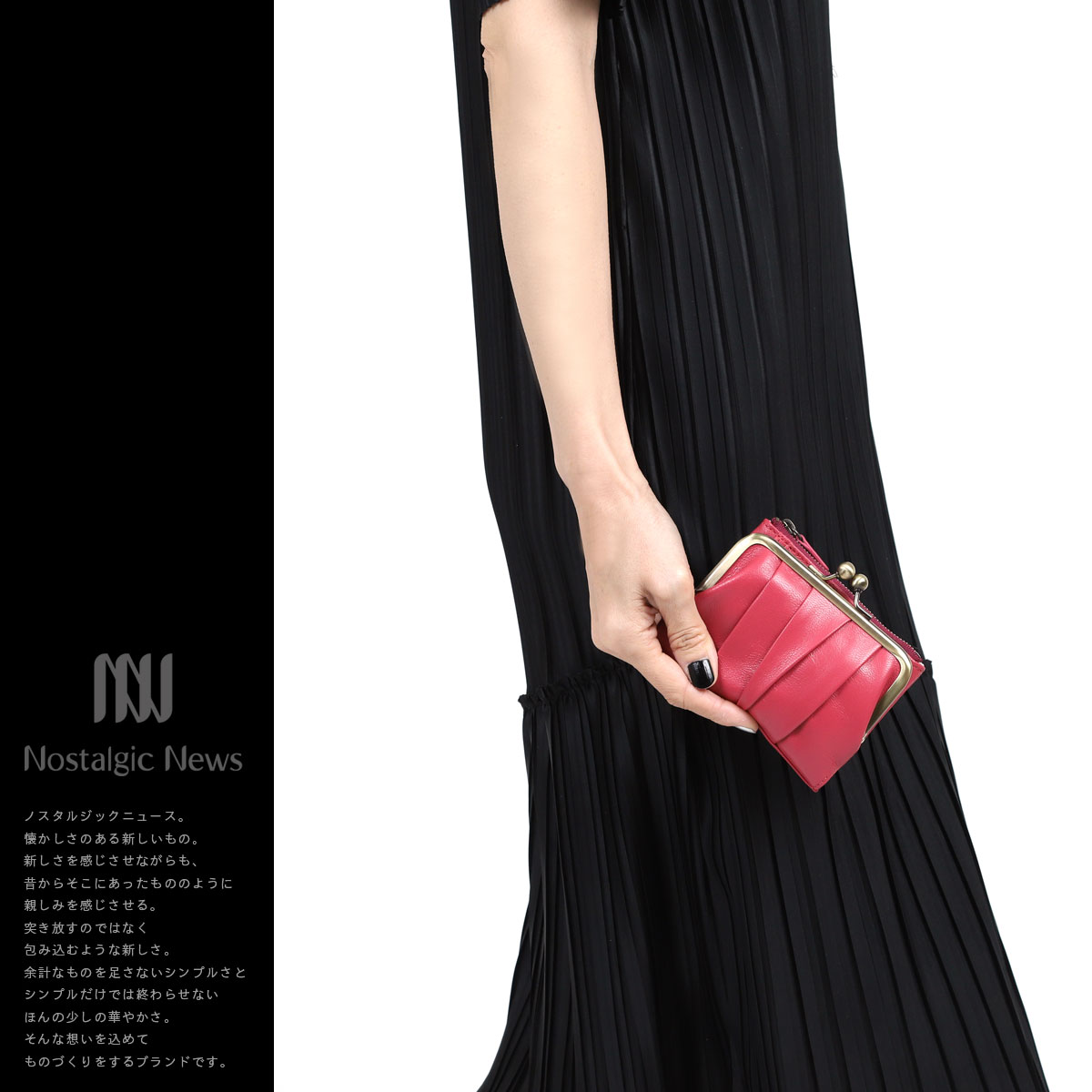 がま口長財布 シープスキンレザー 本革 プリーツ Nostalgic News ノスタルジックニュース