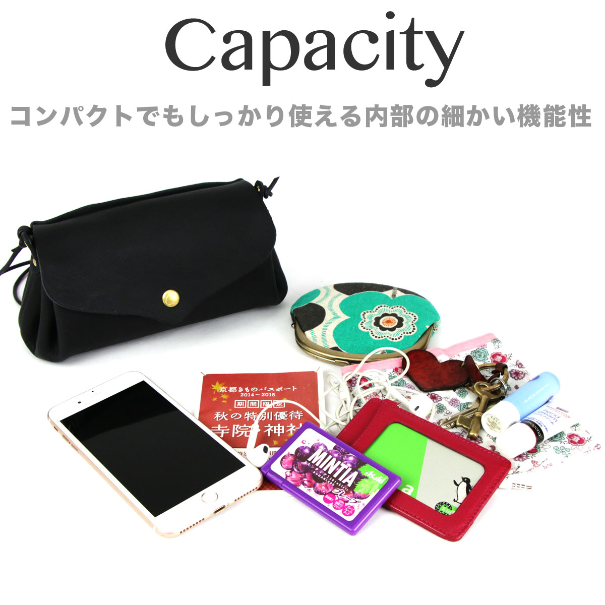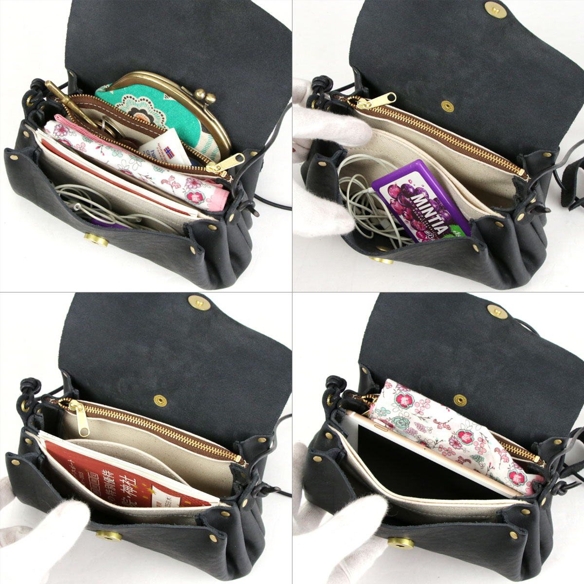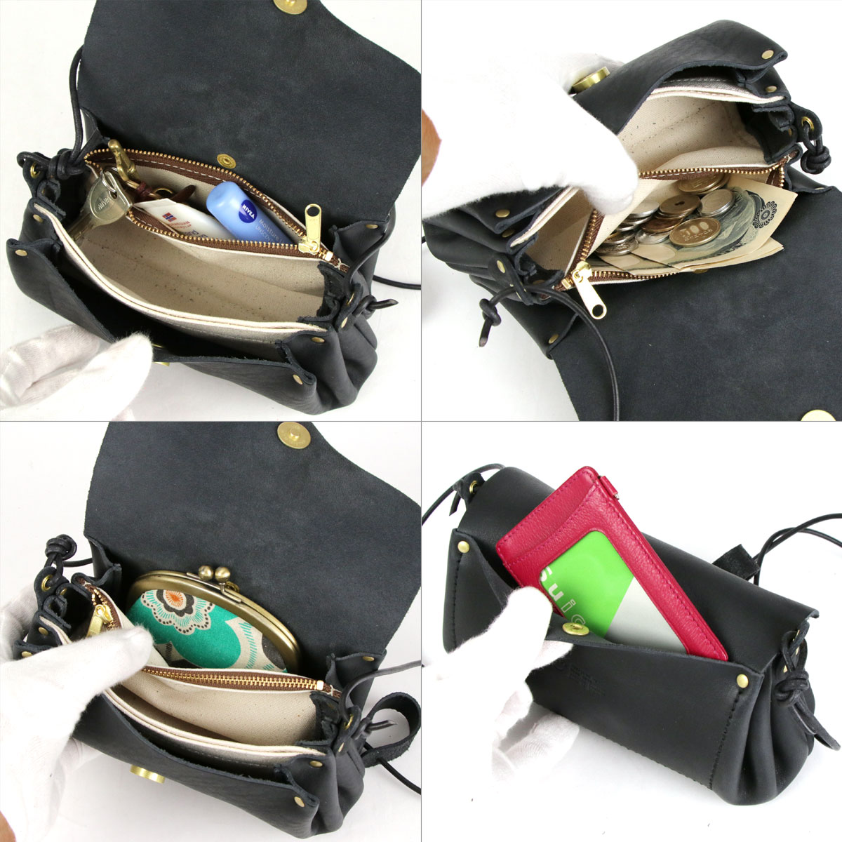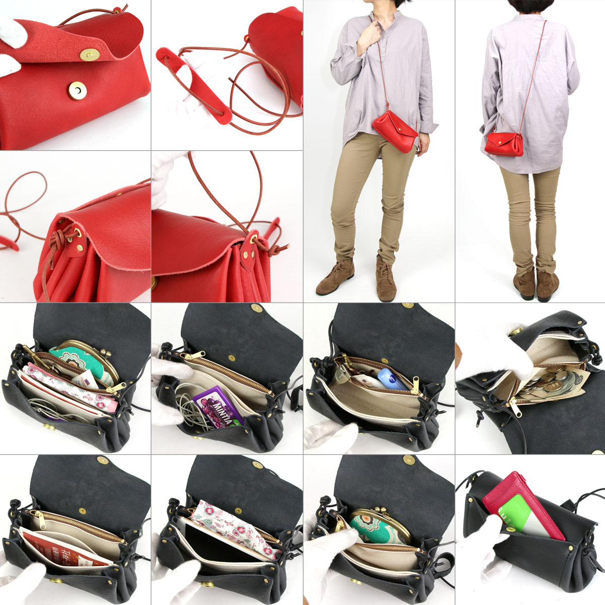 横長ワイドミニショルダーバッグ ポシェット 姫路レザー 栃木レザー 本革 日本製 CHAM チャム 黒 ブラック BLACK NERO ネロ