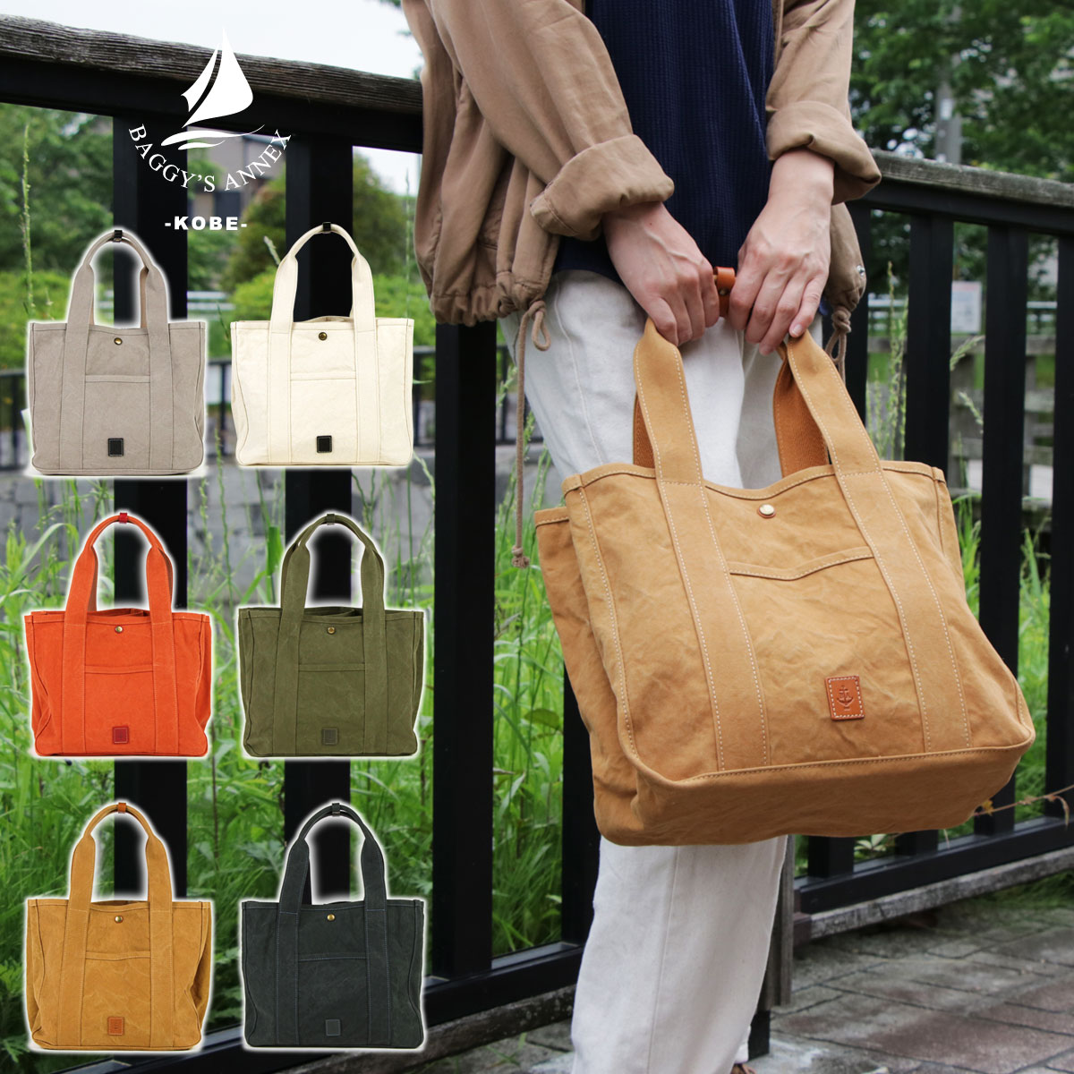 シザーバッグ ヒップバッグ 2Way メンズ 縦長スクエア グローブレザー 倉敷6号帆布 日本製 BAGGY PORT バギーポート