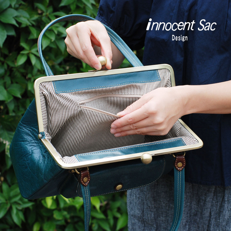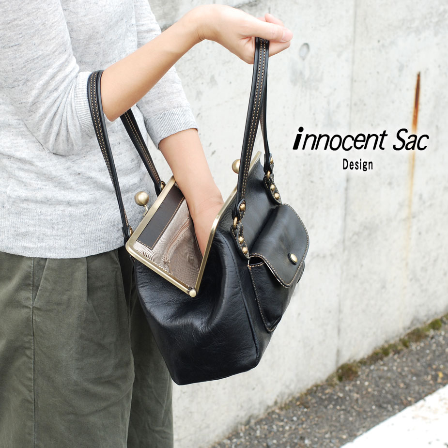 2Wayショルダーバッグ ハンドバッグ 両煽りポケット コンパクト 小さめ innocent Sac イノセントサック 角底 角型 スクエア ミニショルダーバッグ レディース 本革 牛革 姫路レザー ユニセックス 男女兼用 シュリンクレザー 多機能 ミニマリスト 女性用 婦人用