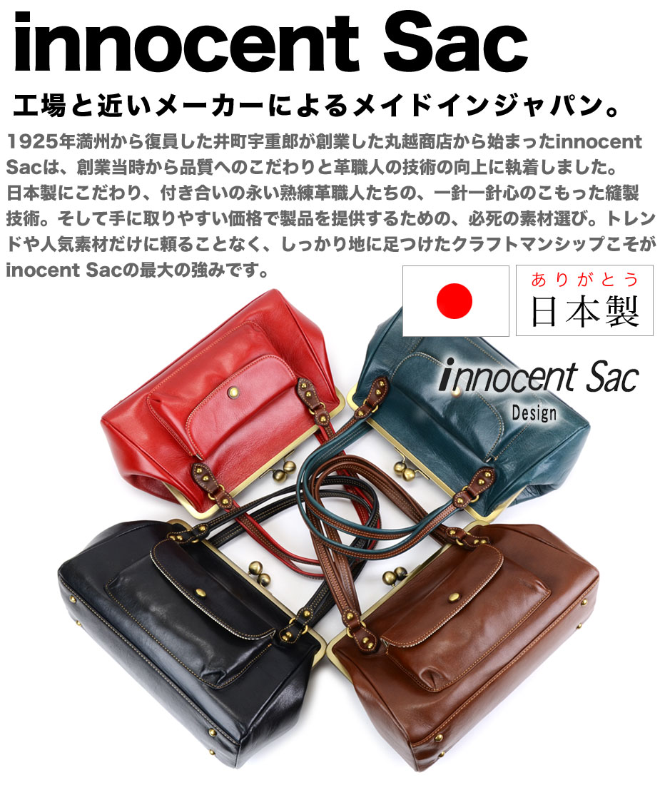 大阪に本社を置くカバンと財布の老舗メーカーがオリジナルブランドして打ち出しているinnocent Sac(イノセントサック)。1925年満州から復員した井町宇重郎が創業した“丸越商店”から始まったinnocent Sacは、創業当時から品質へのこだわりと革職人の技術の向上に執着しました。メイドインジャパンにこだわり、付き合いの永い熟練革職人たちの、一針一針心のこもった縫製技術。そして手に取りやすい価格で製品を提供するための、必死の素材選び。トレンドや人気素材だけに頼ることなく、しっかり地に足つけたクラフトマンシップこそがinocent Sacの最大の強みです。