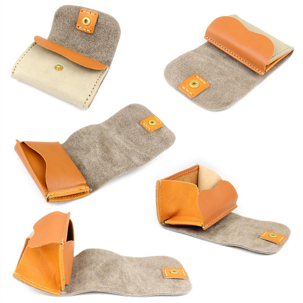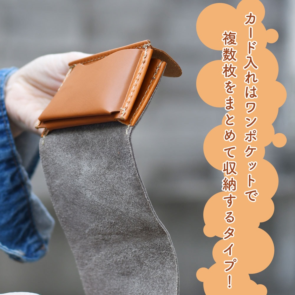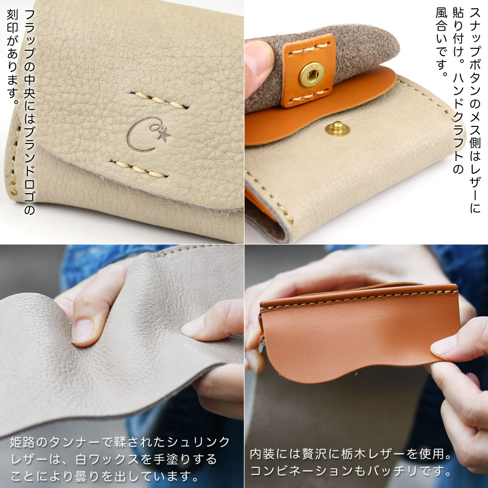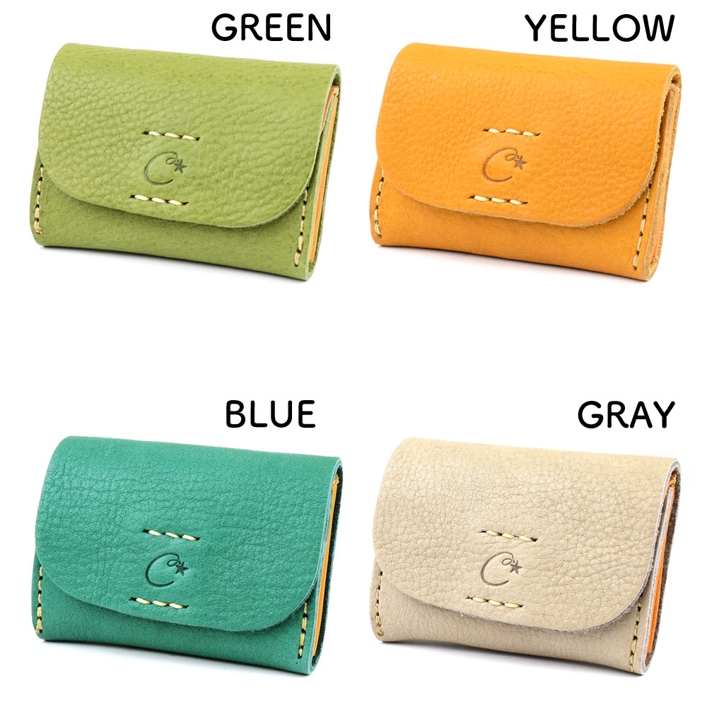 2ポケットカードケース 名刺入れ 小さい財布 姫路レザー ナチュラルシュリンクレザー カラフル パステル ヌメ革 日本製 CHAM チャム