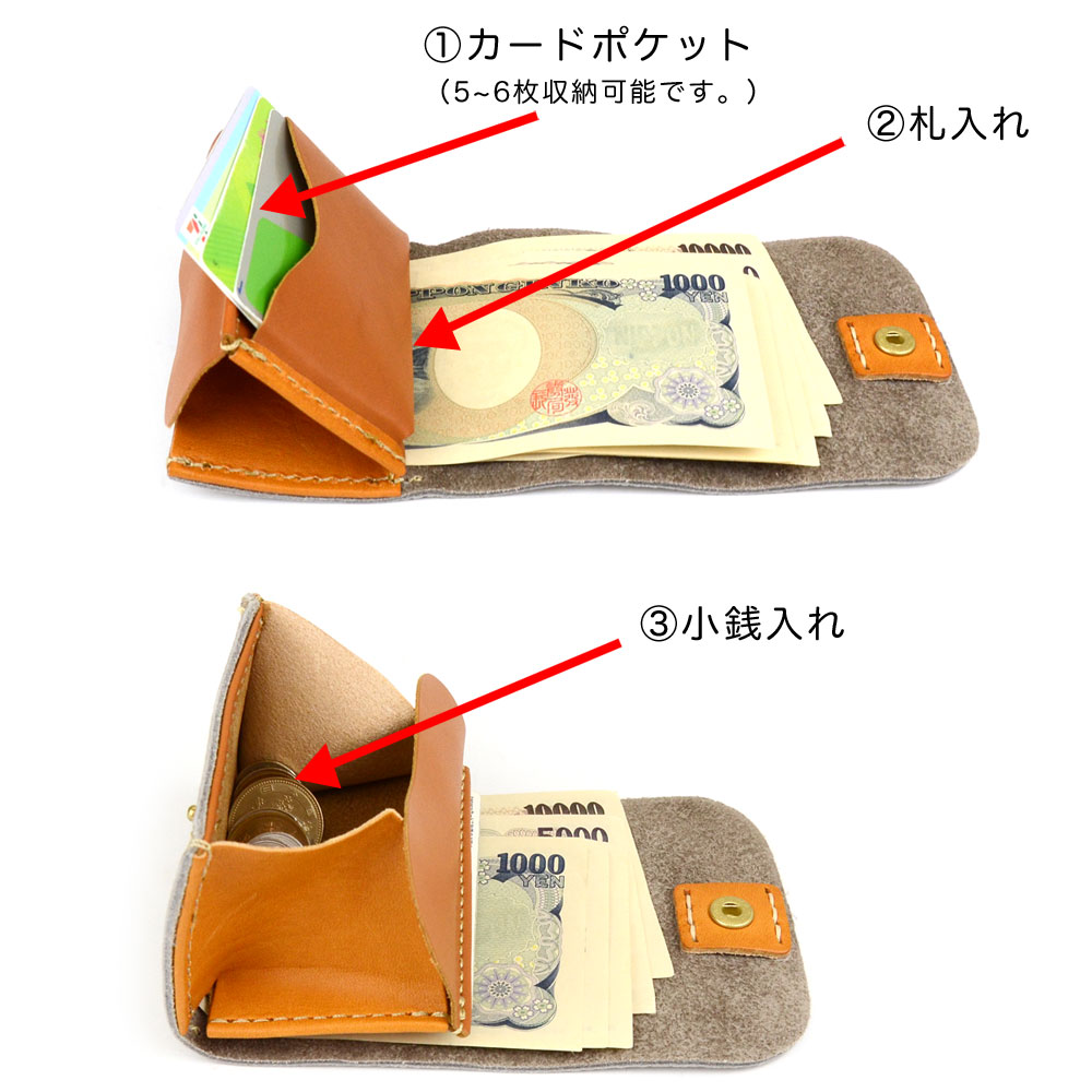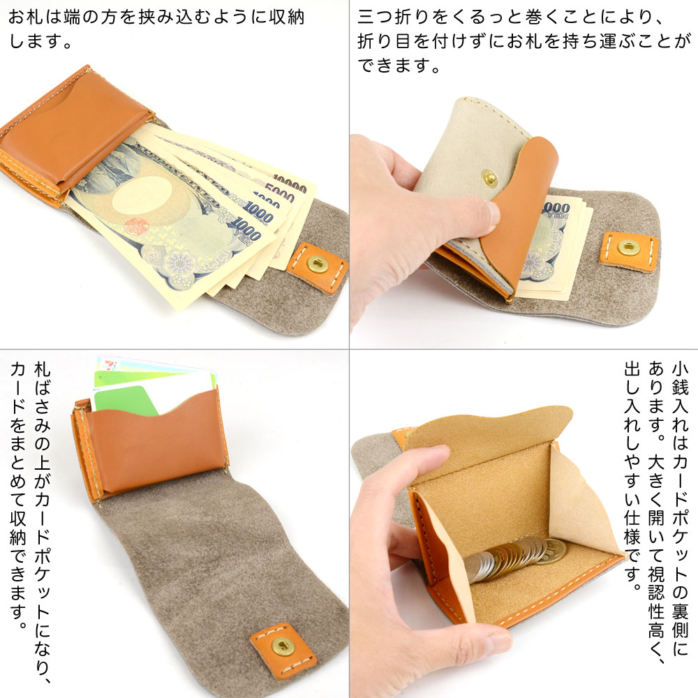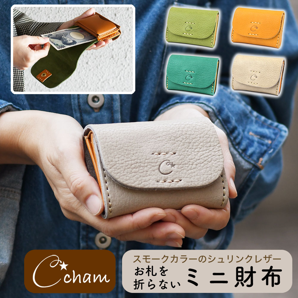 小銭が取り出しやすい三つ折り 小さい財布 ギャルソン 極小財布 お札を折らずに収納 姫路レザー カラフル パステル ヌメ革 日本製 CHAM チャム