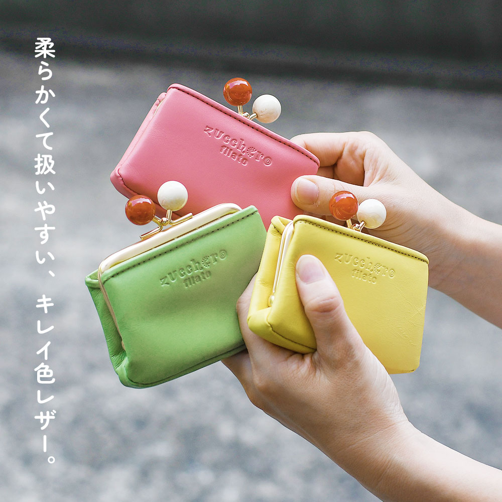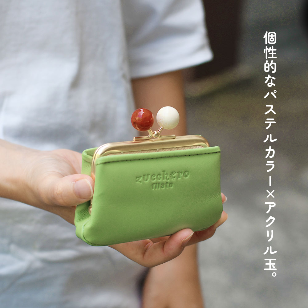 親子がま口長財布 レディース 本革 アクリル玉 日本製 Zucchero filato ズッケロフィラート