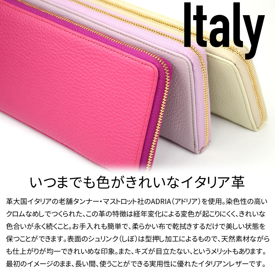 革大国イタリアの老舗タンナー・マストロット社のADRIA(アドリア)を使用。染色性の高いクロムなめしでつくられた、この革の特徴は経年変化による変色が起こりにくく、きれいな色合いが永く続くこと。お手入れも簡単で、柔らかい布で乾拭きするだけで美しい状態を保つことができます。表面のシュリンク(しぼ)は型押し加工によるもので、天然素材ながらも仕上がりが均一できれいめな印象。また、キズが目立たない、というメリットもあります。最初のイメージのまま、長い間、使うことができる実用性に優れたイタリアンレザーです。