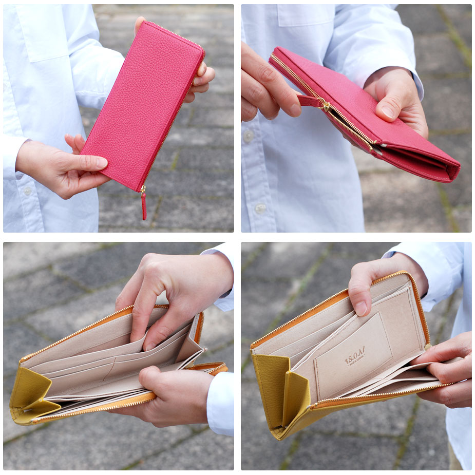 スリムな長財布の定番スタイル、L字ファスナータイプの薄型レザーウォレットです。ややスクエアでスタイリッシュなフォルムはバッグの中でもかさ張りにくく、必要なものを無理なく収納できる構造なので、スマートに使うことができます。