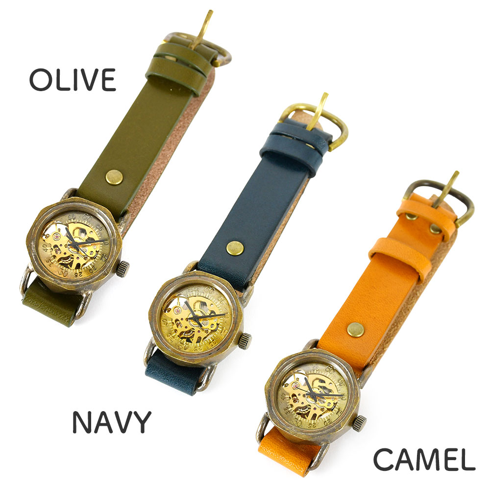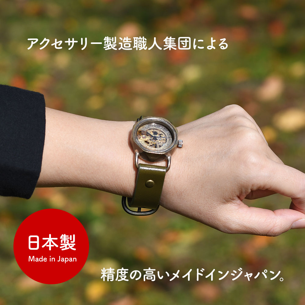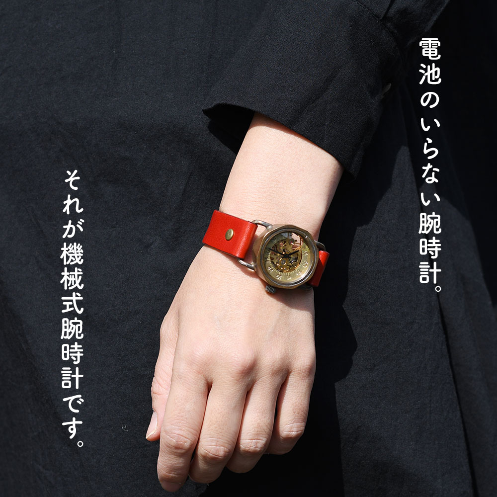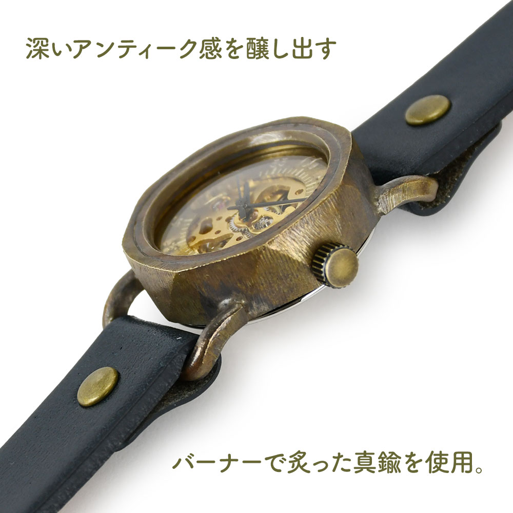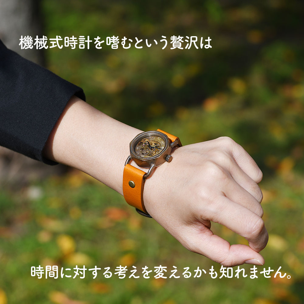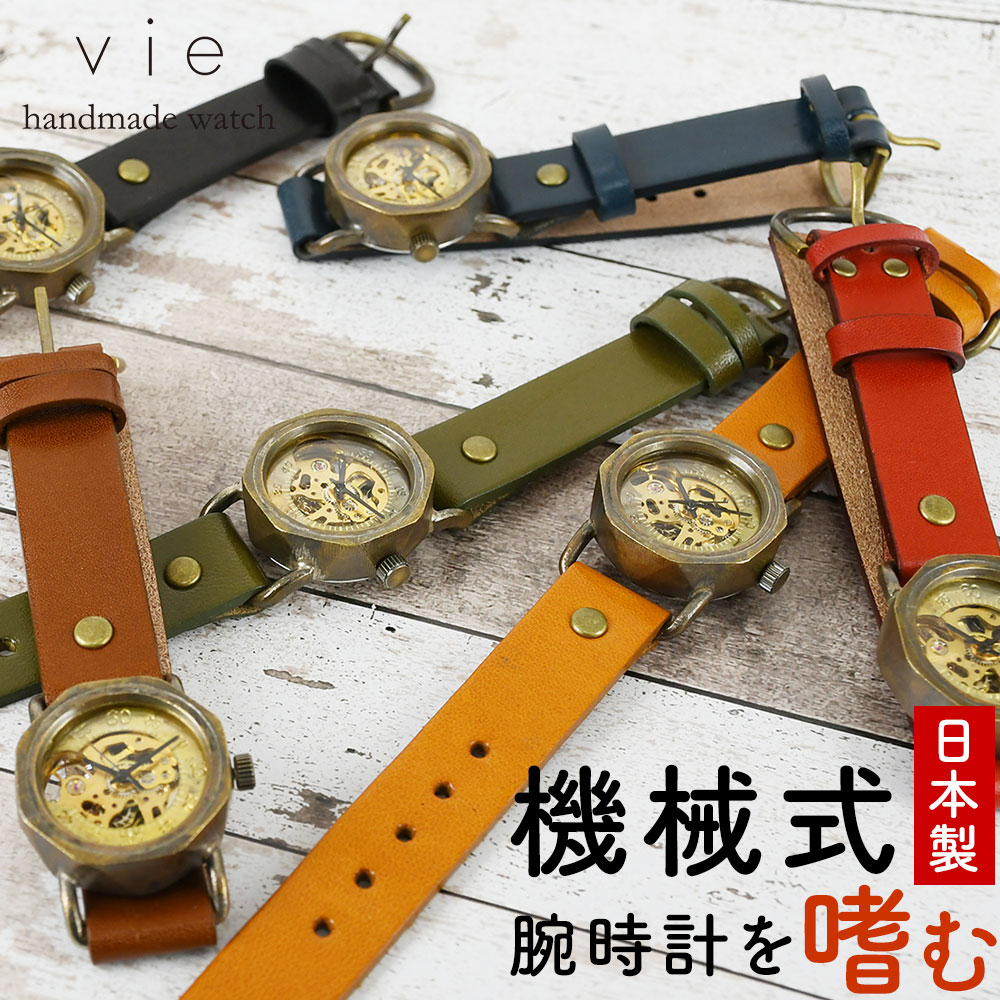 機械式腕時計 手巻き 腕時計 ウォッチ 日本製 アンティーク 栃木レザー 真鍮 1年動作保証 vie ヴィー