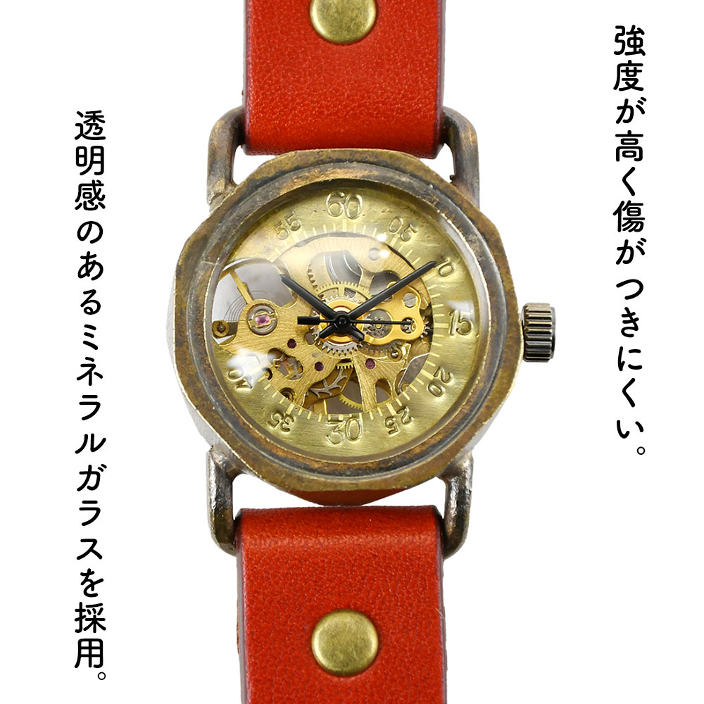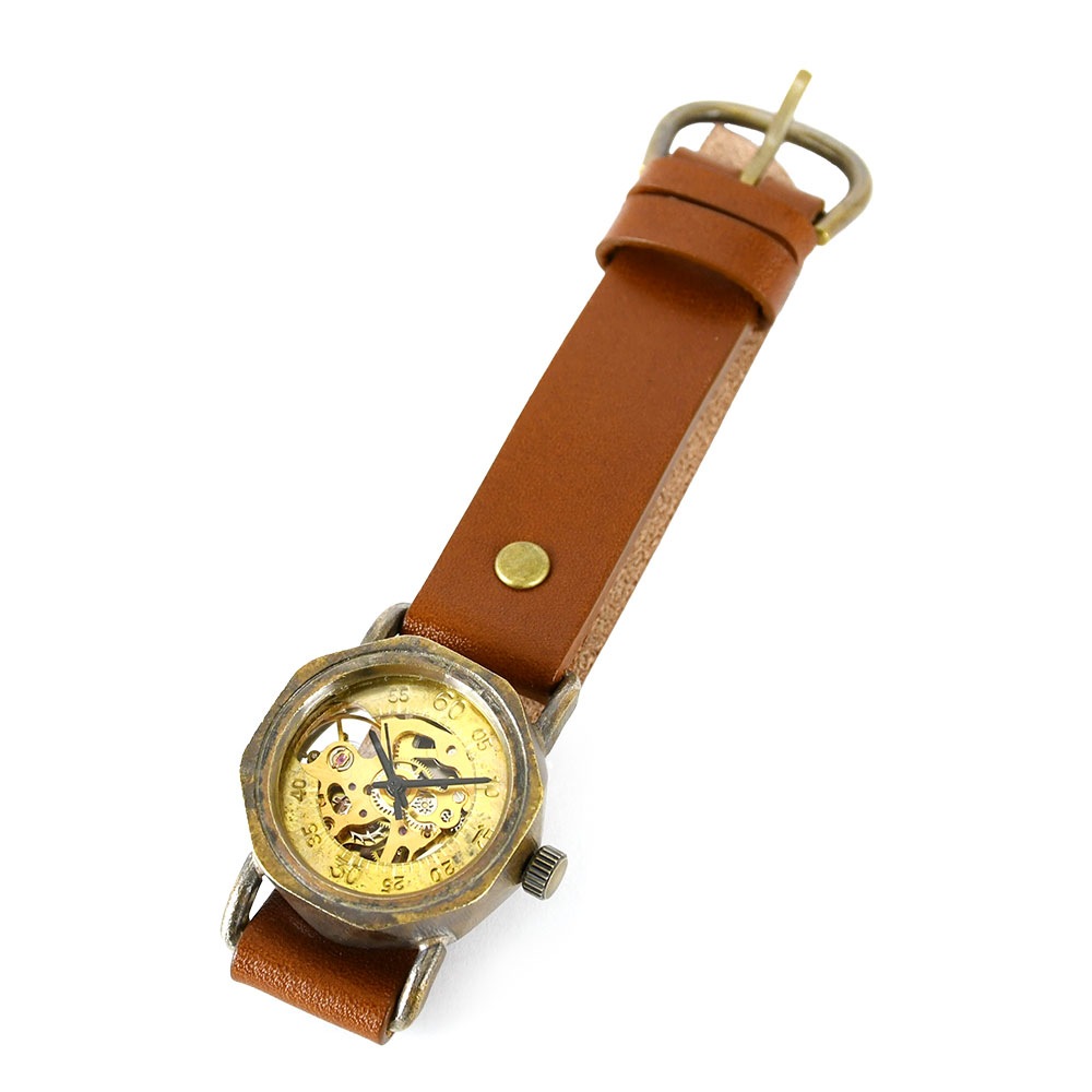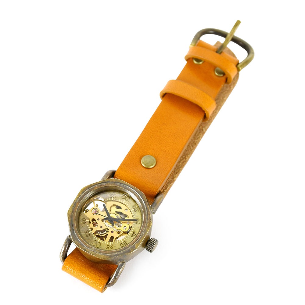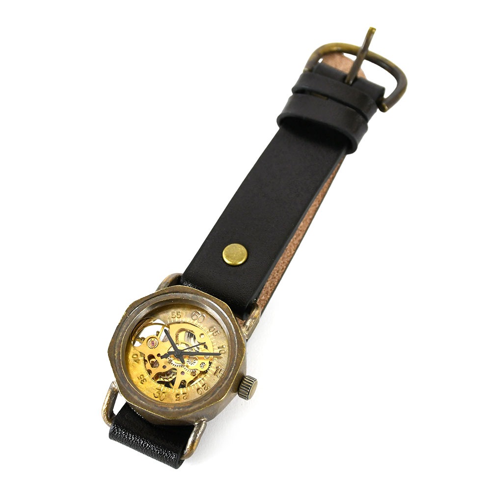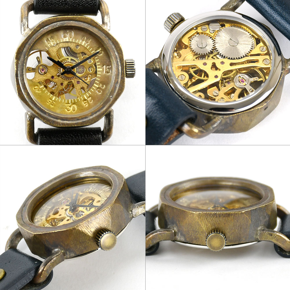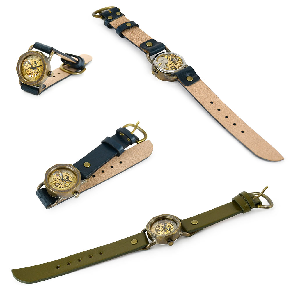 機械式腕時計 手巻き 腕時計 ウォッチ 日本製 アンティーク 栃木レザー 真鍮 1年動作保証 vie ヴィー