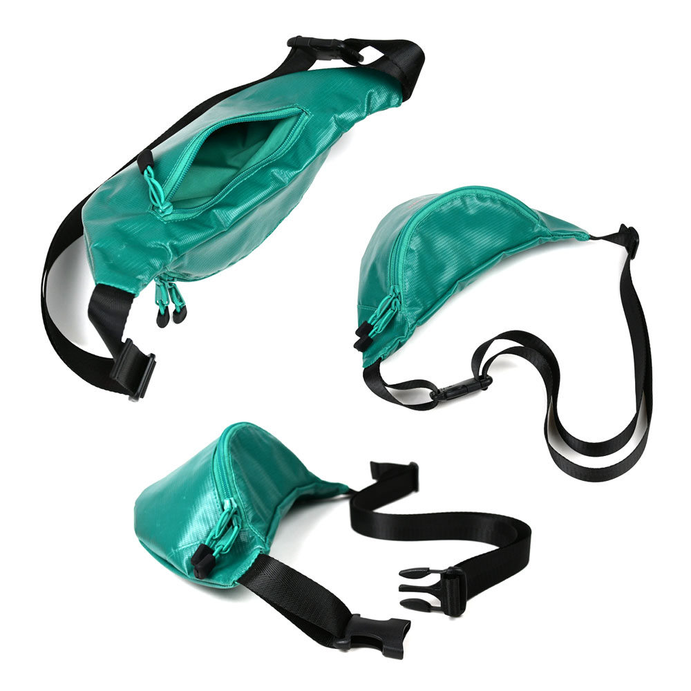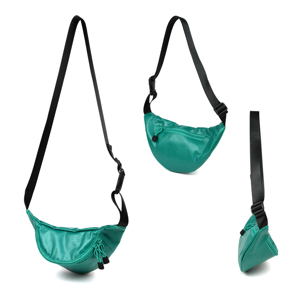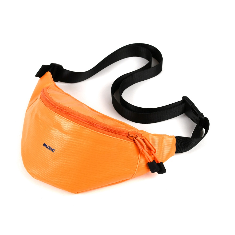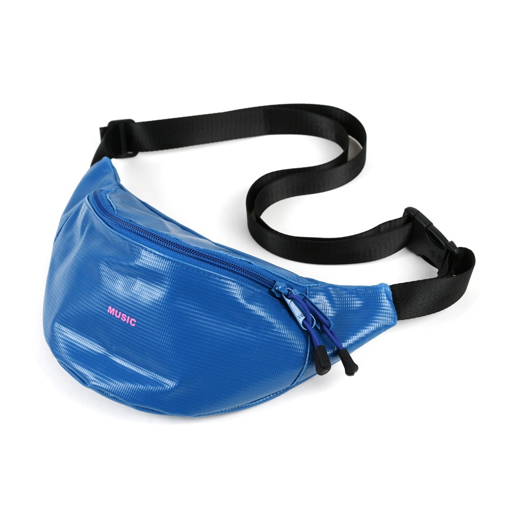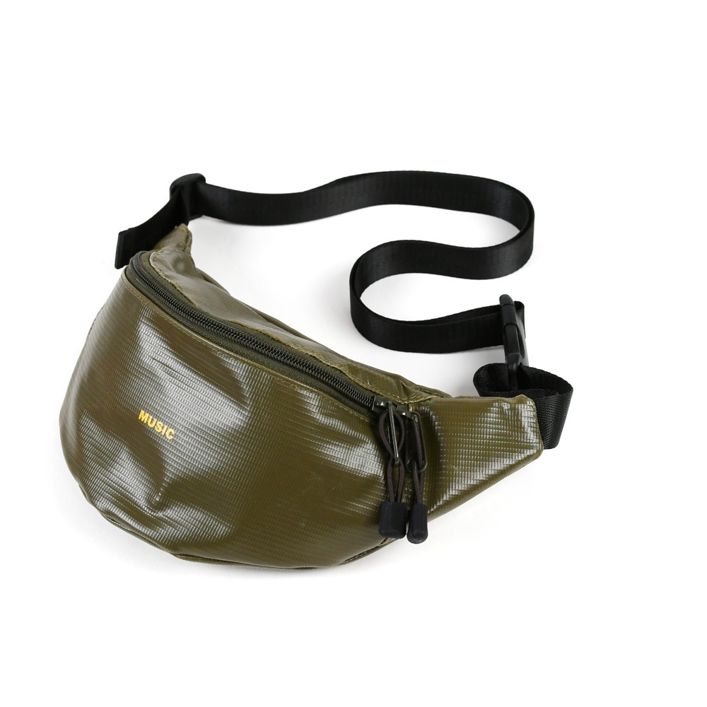 アイテムについて ハーフのミニウェストバッグは、お出かけに必要なお財布・スマホ(携帯)・イヤホンなどの小物を収納できる、コンパクトサイズのお手軽バッグです。腰巻きでウェストポーチとしてはもちろん、ベルトの長さを調整することで、斜めがけのボディバッグとしても使えます。前面にあるMUSICの文字は、デザイナーの「ちょっとくらいなら濡れたり、汚れたりしても平気なフェスバッグをつくりたいい」というメッセージをプリントしたもの。本体カラーとの配色が可愛いところも、ブランドのポップなイメージにぴったりです。収納面は、身の回りの持ち物が必要最低限で入る、というコンパクトなサイズ感。メインポケットの収納目安は、一般的な二つ折り財布とスマホに小物が少し、といったところ。ペットボトルなら、350ミリがジャストサイズ。ダブルファスナー仕様になっているので、開け閉めがスムーズで便利です。背面にあるファスナーポケットは、開口部がおよそ14センチと小さめですが、イヤホンやパスケースをはじめ、小さなものならスマートフォンを仕舞うこともできます。