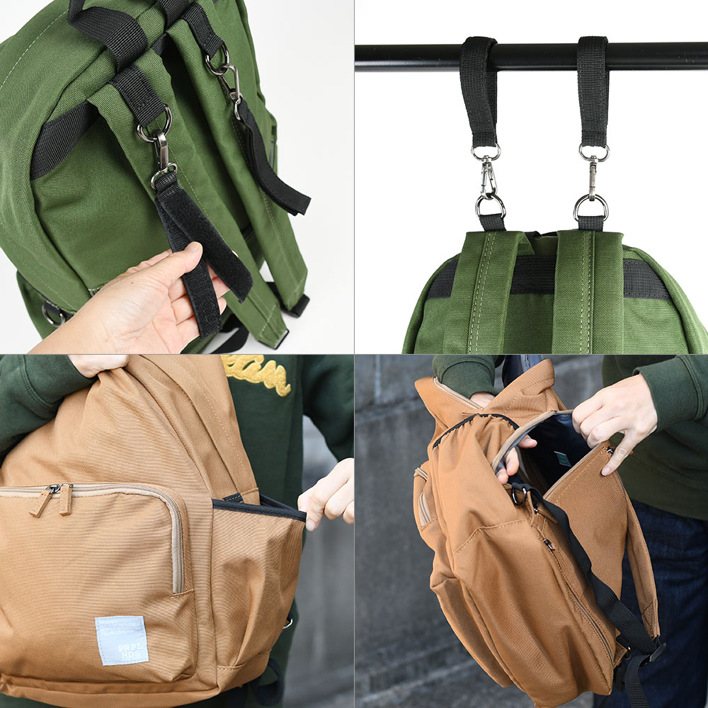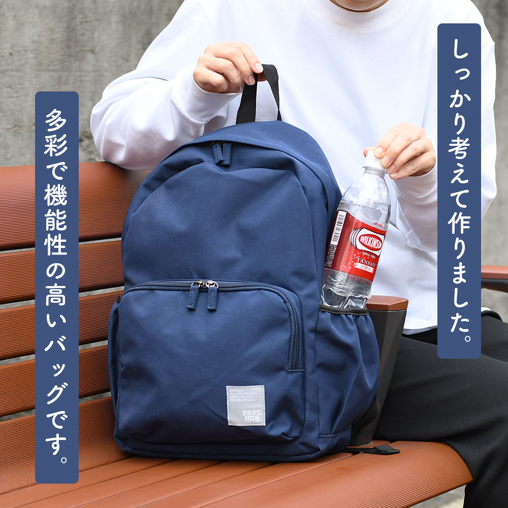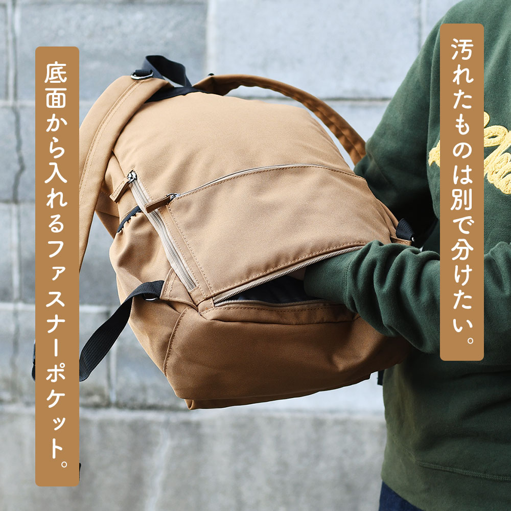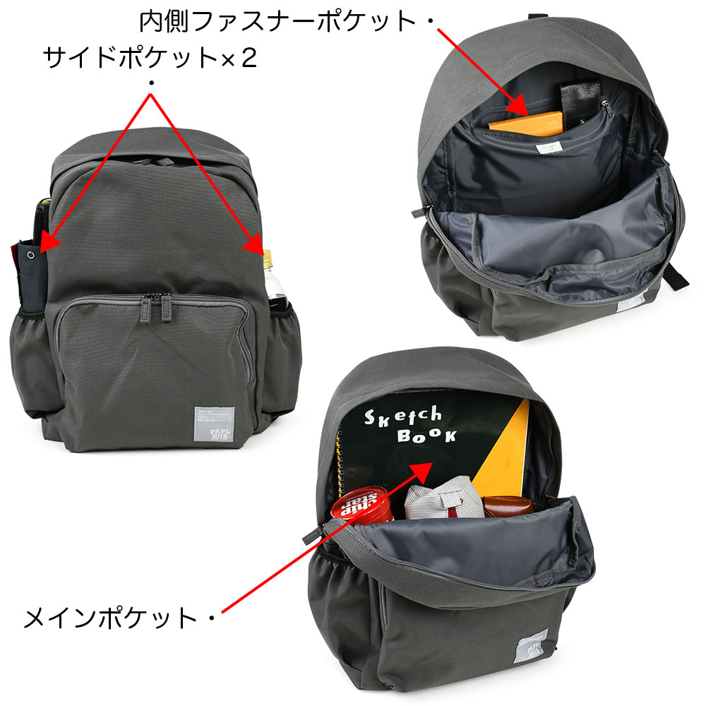 [アイテムについて] 撥水加工の施された軽量ポリエステルを使用したA4サイズ対応のリュックサック/バックパックになります。 メインポケットはWファスナー開閉で左右どちらにも開けられて、便利にお使いいただけます。 メインポケット内には、ファスナーポケットが1つだけのシンプルで自由度の高い設計となっております。 背面サイドにはメインポケットへのショートカットファスナーがあり、クイックなアクセスにも対応します。 外側フロントにはファスナーポケットがあり、内側にばフリーポケットが1つとティッシュケースホルダーが設置されています。 背面にはファスナーポケットが1つあり、長財布なども収納可能です。 底面背面側にもファスナーポケットがあります。こちらのポケットはメインポケット内を生地によって仕切られた形となっております。底面ポケットにはメインポケットには一緒に入れたくない汚れものなどを収納して、底にキープすることができます。 両サイドにはサイドポケットがそれぞれあり、ペットの排泄後の清掃用の水と、ご自身の水分補給用の水などを分けて持ち運ぶことができます。 ベビーカーやショッピングカート、ペット用のカートなどに直接吊り下げられる、カート用ホルダーが2本ついており、上部のD環を使用してぶら下げることができます。 また、ショルダーベルト下部付け根あたりには両サイドにD環がついており、ペット用のリードをつなげるのに最適です。 メインポケット内には消臭機能を持つデオドラントネームが縫い付けられております。 デオドラントネームはニオイの元になるアンモニアなどを多量に吸収し、消臭効果を発揮します。活性炭などの従来の吸着剤に比べ、5~20倍の吸着能力を持っています。また通常の消臭繊維製品に比べて即効性にも優れています。