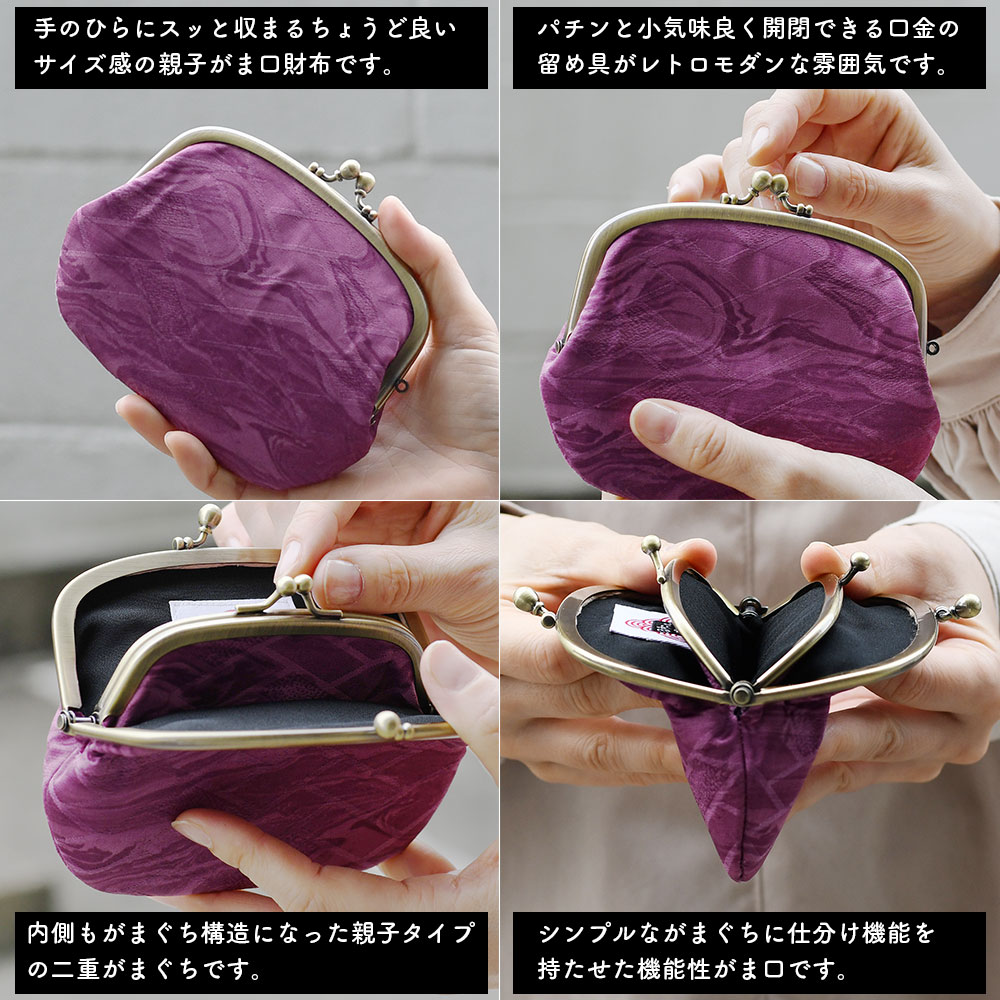正絹 薄型親子がま口財布 京都黒染め 絽 粋 シルク 4.1寸 綸子 緞子 日本製 ほ和ん howan ほわん
