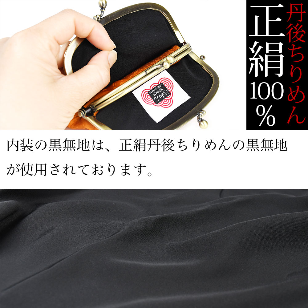 正絹 薄型親子がま口財布 黒ちりめん 粋 シルク 4.1寸 丹後縮緬 綸子 緞子 日本製 ほ和ん howan ほわん